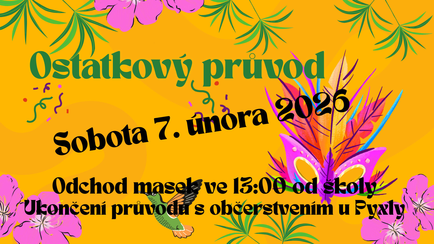Pozvánka do ostatkového průvodu ZŠ a MŠ Vysoké Popovice