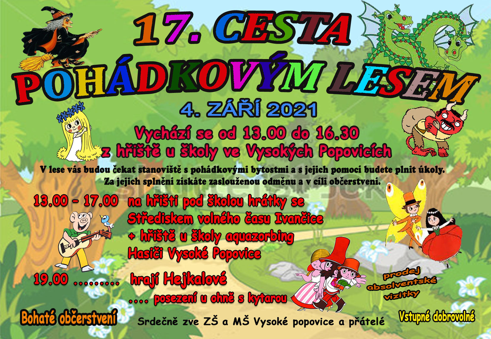 Jménem pořadatelů Vás zveme na 17. Cestu pohádkovým lesem již tuto sobotu 4. 9. 2021 od 13.00 hod.