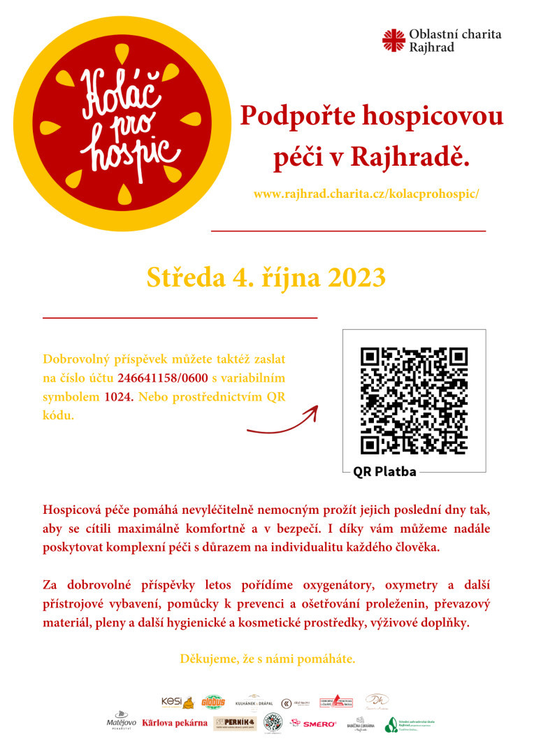 obracím se na Vás s prosbou o pomoc s propagací naší sbírky Koláč pro hospic, která se koná 4. října 2023.