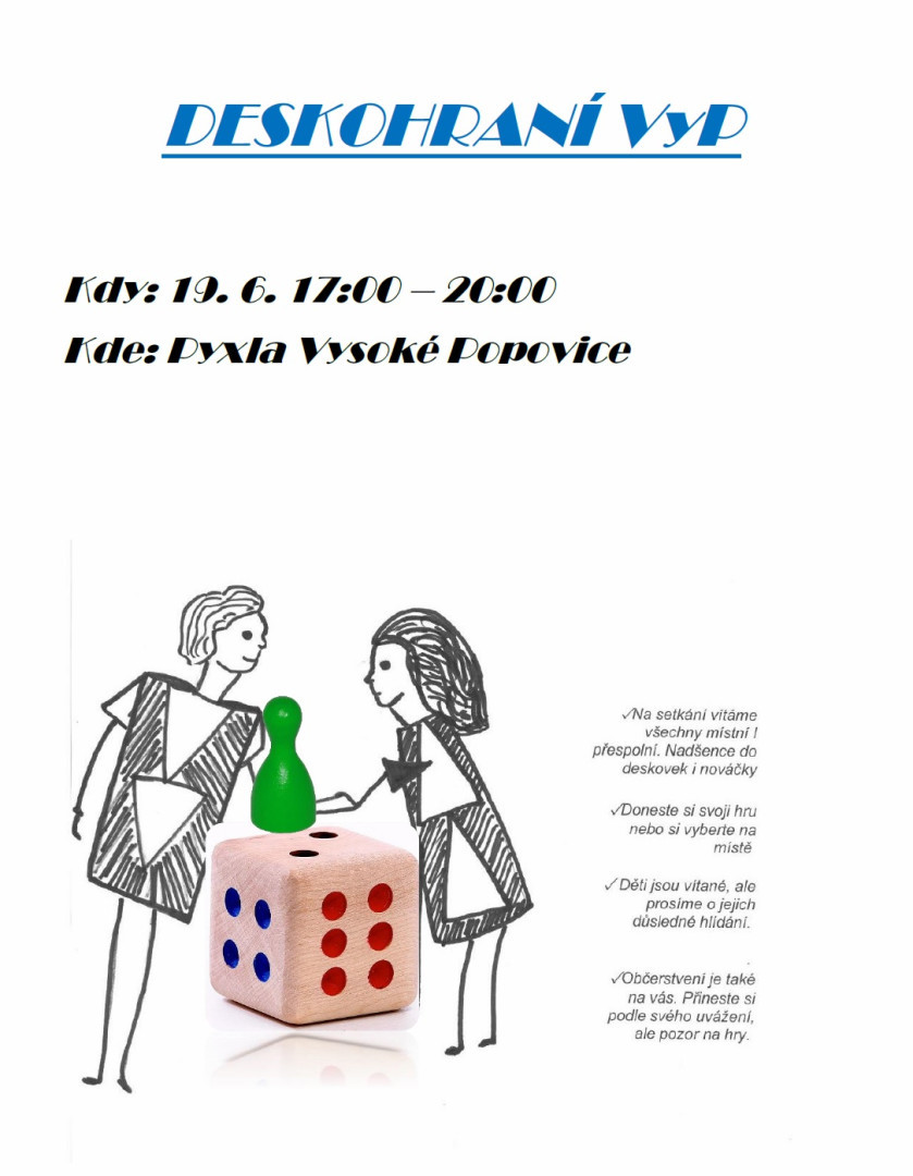 Přijďte si s námi zahrát deskové hry. Budeme se na vás těšit 19. 6. od 17 hodin v Pyxle.