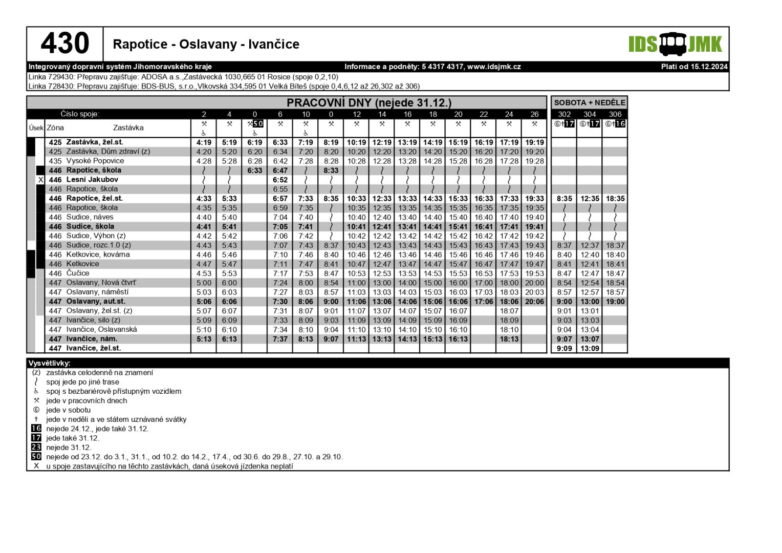 V příloze zasíláme jízdní řád linky 430.