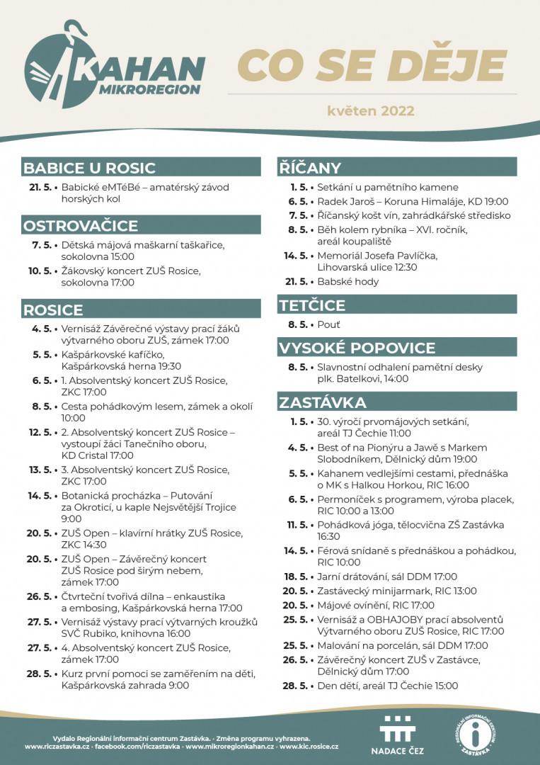 Kulturní akce Mikroregionu Kahan - květen 2022