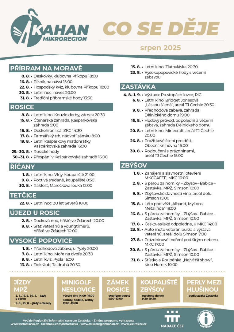 Kulturní akce Mikroregionu Kahan - srpen 2025