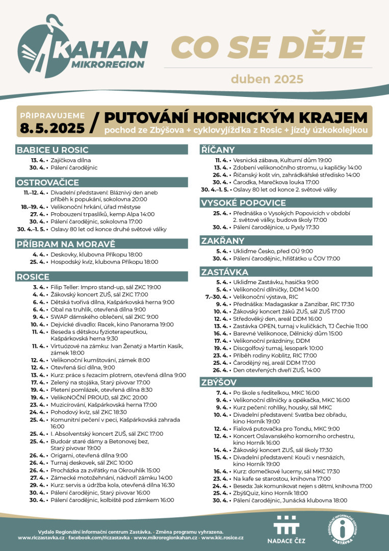 Kulturní přehled Mikroregionu Kahan - duben 2025