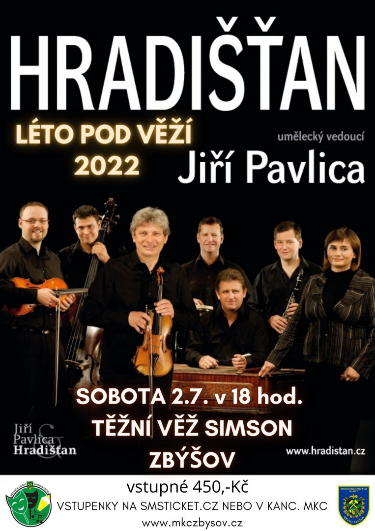 MKC Zbýšov pořádá 1. ročník serii koncertů v netradičním prostředí těžní věže Simson zvanou Léto pod věží, kde se letos můžete těšit na jedinečný koncert Jury Pavlicy a jeho souboru Hradišťan a dvojkoncert písničkářů Voxela a POKáče.