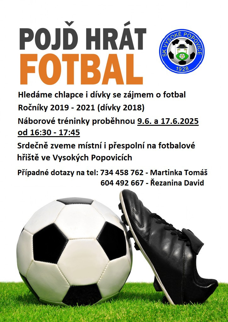 Nábor mladých fotbalistů do SK Vysoké Popovice