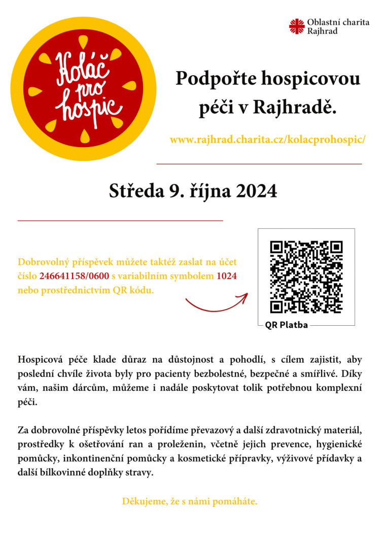 Oblastní charita Rajhrad pořádá tradiční sbírku KOLÁČ PRO HOSPIC
