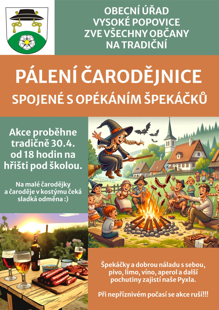 Srdečně zveme všechny občany na tradiční dubnové pálení čarodějnic. Špekáčky a dobrou náladu s sebou, o zbytek se postará naše Pyxla.