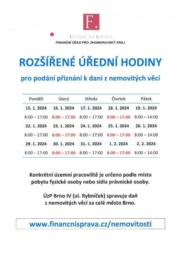 Rozšířené úřední hodiny Finančního úřadu pro JMK