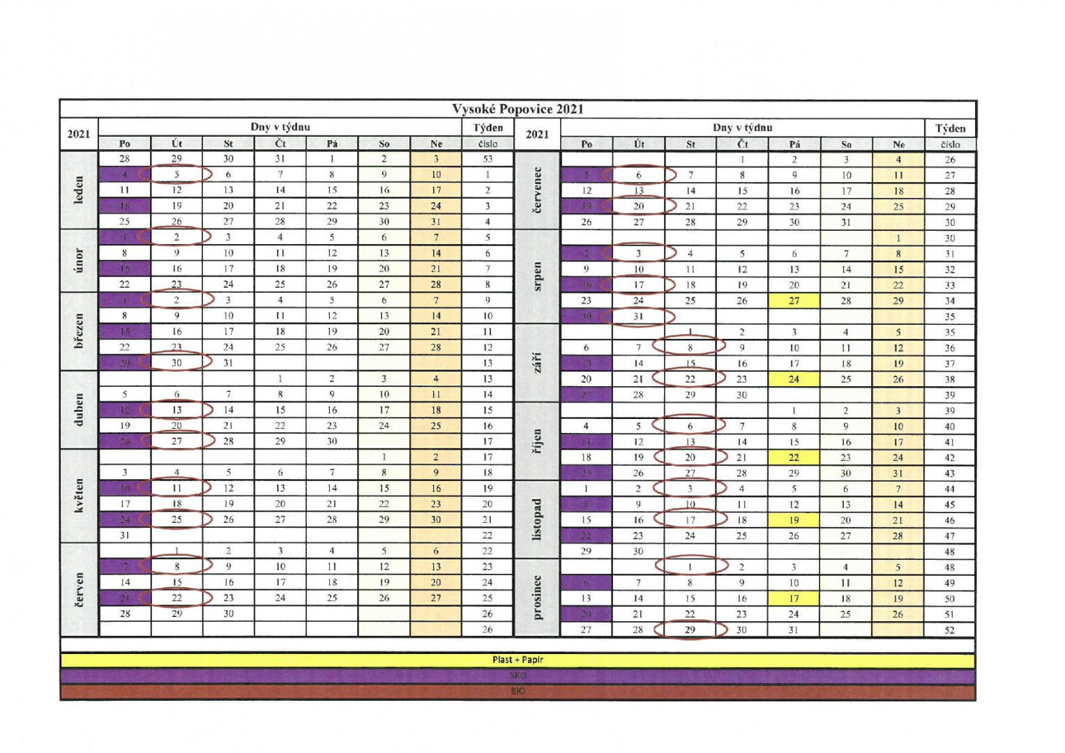 Kalendář svozu je vyvěšen na webových stránkách obce, též na nástěnce u kostela. A pro úplnost bude připojen v prosincovém čísle Povyku.