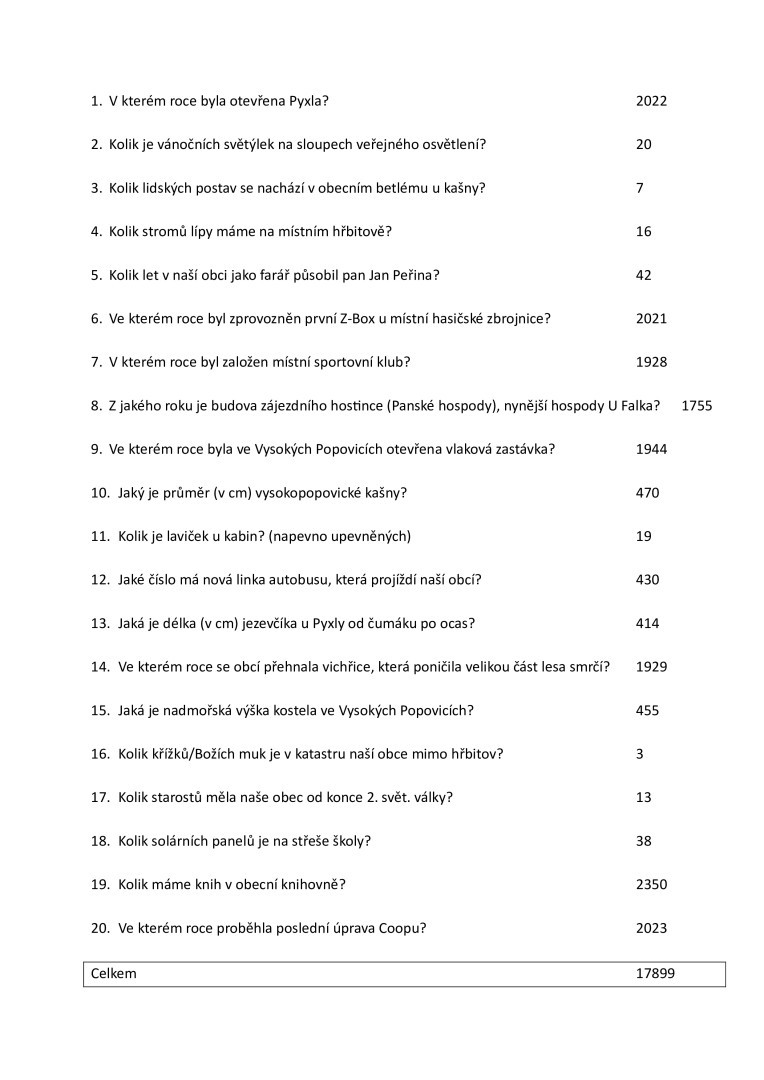 Děkujeme všem, kteří se zúčastnili! Výhercům gratulujeme a ceny budou na OÚ k vyzvednutí od středy 7. 1. 2025.