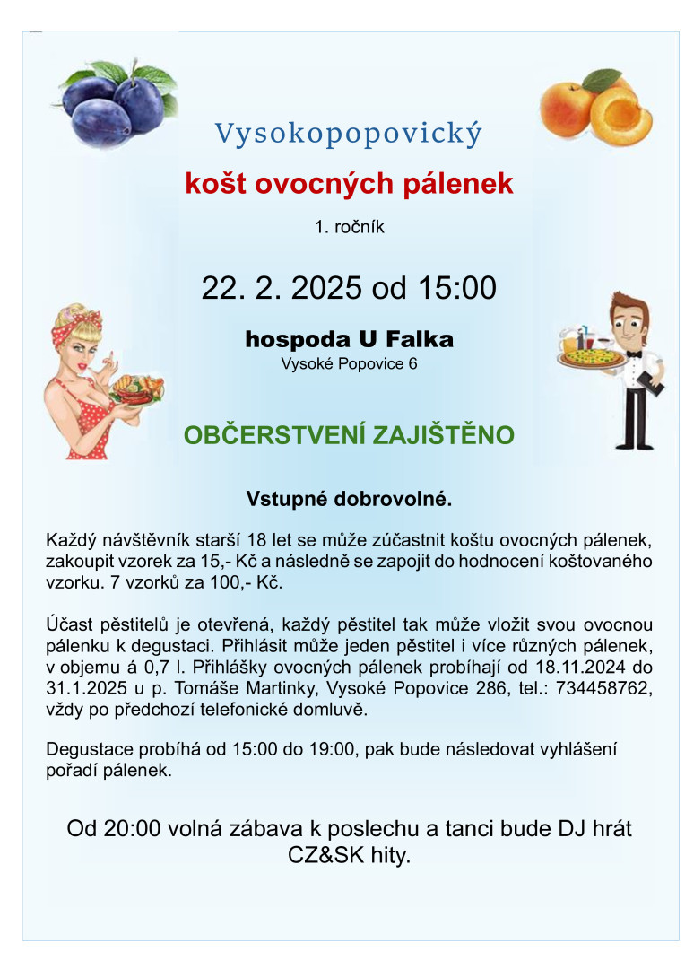 Srdečně zveme na Vysokopopovický košt pálenek, který proběhne 22.2.2025 v hospodě U Falka